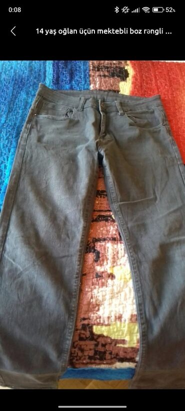 Boz rengde mektebli salvari yeniden secilmir az geyilib 10-11 yaş ucundu 12 yasda geyine biler oğlan ucundu
