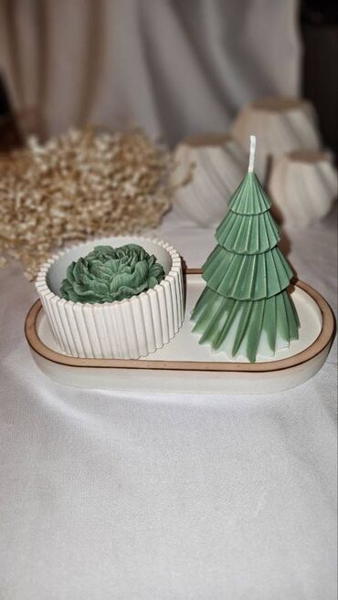 Şam ağacı formasında dekorativ ətirli şamlar Müxtəlif rəng və qoxu çeşidləri mövcuddur. Təbii soya mumundan hazırlanır. Çatdırılma mövcuddur Sifariş üçün DM — istənilən rəng və qoxu.