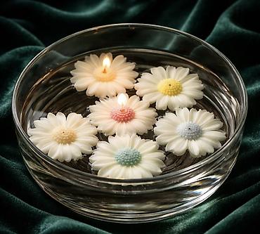 Məhsul: Çiçək formalı dekorativ şamlar - Dizayn: Güllə (papatyaya bənzər) formalı, detallı ləçək teksturası - Material: Parafin əsaslı şam kütləsi, pambıq fitil - Rənglər: Açıq krem, bej, qəhvəyi,...