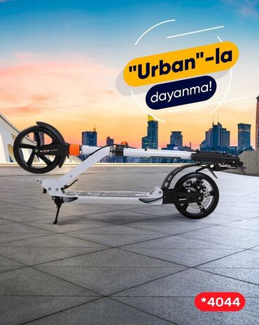 Elektrikli skuter – şəhər daxili hərəkət üçün rahat və kompakt nəqliyyat vasitəsi. Xüsusiyyətlər: - Ön işıqlandırma: parlaq LED fara və LED displey (sürət/batareya göstəricisi). - İdarəetmə: sağ t...