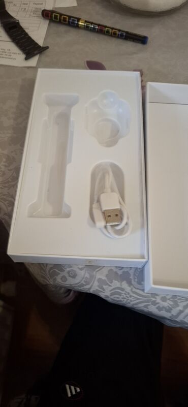 AMOLED ekranlı ağıllı saat dəsti. Qutusu, istifadəçi təlimatı və simsiz enerji yığma cihazı ilə birlikdədir. Gümüşü rəngli korpus və açıq boz rəngli silikon kəməri var. İdman və gündəlik istifadə ü...
