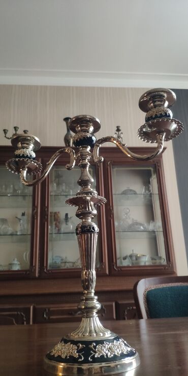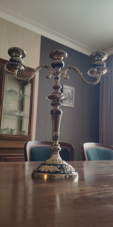 Şamdan. Çox gözel görünüşü var. Emalın üstünde işlemedir. Material latun.