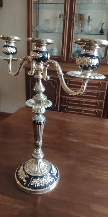 Şamdan. Çox gözel görünüşü var. Emalın üstünde işlemedir. Material