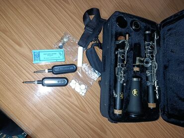 Başlıq: Klarnet Dəsti Təsvir: Klarinet dəsti - Taxta gövdəli klarnet, metal klapanlar və üzük mexanizmi - Ağızlıq hissəsi ilə birlikdə - Bir neçə hissədən ibarət konstruksiya: yığılması və sökülm...