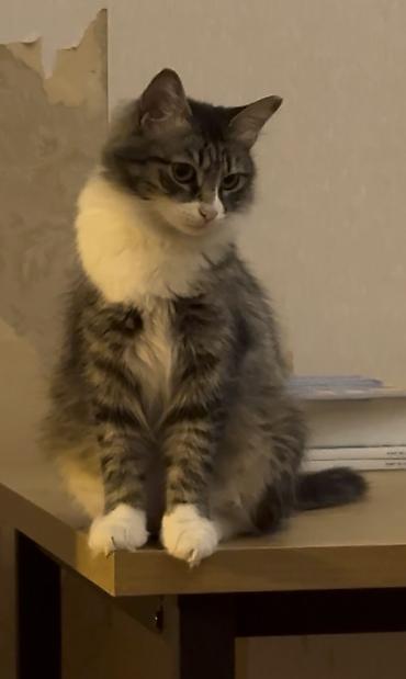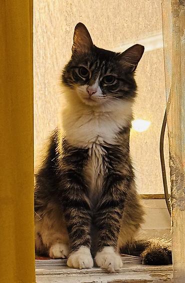 Pişiyin sahibi səhhəti ilə əlaqədar pişiyinə baxa bilmir və ona əsil ailə nəvazişi göstərəcək şəxs axtarılır. Üçrəngli ev pişiyidir– mehriban və sakit xasiyyətli. - Rəngi: ağ, qara və narıncı qar...