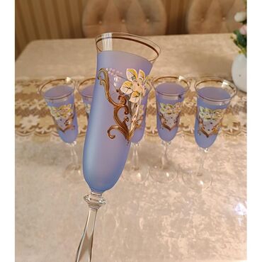 Bagema şampan/qədəh dəsti, 6 ədəd İdeal vəziyyətdədir, cızıq, sınıq yoxdur. İşlədilməyib. Real alıcıya endirim oluna bilər.