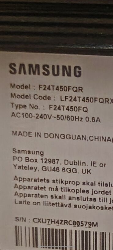Samsung 24” monitor – Model: F24T450FQR (Model Code: LF24T450FQRX).
