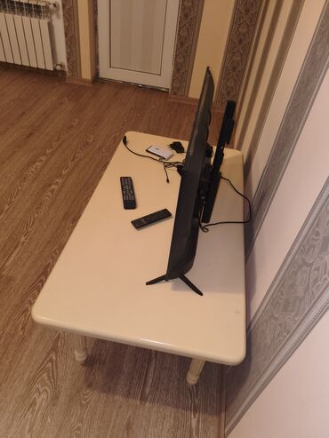 - Girişlər: HDMI (kabel şəkillərdə var), ehtimal olunan USB və anten girişi (modelə xas portlar arxada)