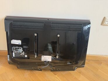 Samsung LCD televizor - Ekran diaqonalı təxminən 32" (80 sm civarı) - Geniş çərçivəli klassik dizayn, oval dayaq ayağı - Ön paneldə “Samsung” loqosu - Arxa hissədə ventilyasiya panjurları və divar...