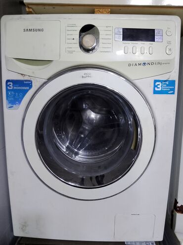 Samsung paltaryuyan maşın – Diamond seriyası, Eco Bubble texnologiyalı, 6.0 kq yükləmə (model üzərində: WF6x/DIAMOND 6.0 kg). Ön tərəfdən yüklənən, iri lyuklu.