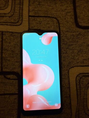 Samsung Galaxy A02s, mavi rəng. Xüsusiyyətlər: - 6.5" Infinity‑V ekran - Arxa kamera bloku: ikili modul və LED fləş - Ön kamera damcı çıxıntıda - 32 GB daxili yaddaş (şəkildə: 10.38 GB istifadə ol...