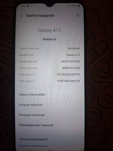 Samsung A12,,,, ss 32 yaddaş 3 ram almaq istəyən zəng eləsin lalafoda yazmayın.
