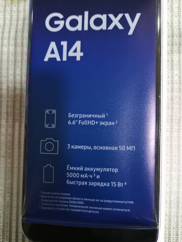 Başqa rəngSamsung Galaxy A14, böyük 6.6 düymlük FHD+ ekranı ilə təchiz olunmuş smartfondur. Cihaz üç arxa kameraya malikdir, əsas kamera 50 MP çözünürlüyə sahibdir. 5000 mAh batareya tutumu və 15 Vt sürətli şarj dəstəyi ilə uzunmüddətli istifadə imkanı təmin edir.