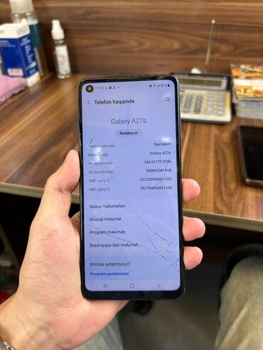 Samsung Galaxy A21s smartfon Xüsusiyyətlər: - Ekran: 6.5" Infinity-O ekran, sağ yuxarı küncdə ön kamera dəliyi - Arxa kamera sistemi: dörd modullu kvadrat blok (LED flaşla) - Ön kamera: ekranda de...