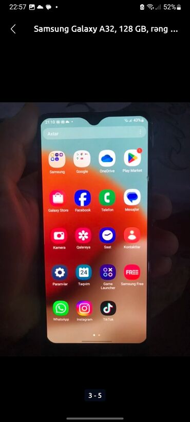 - Platforma və interfeys: Android/One UI, Galaxy Store və Play Market dəstəyi; WhatsApp, Instagram, TikTok və s. tətbiqlər ekran görüntülərində görünür.
