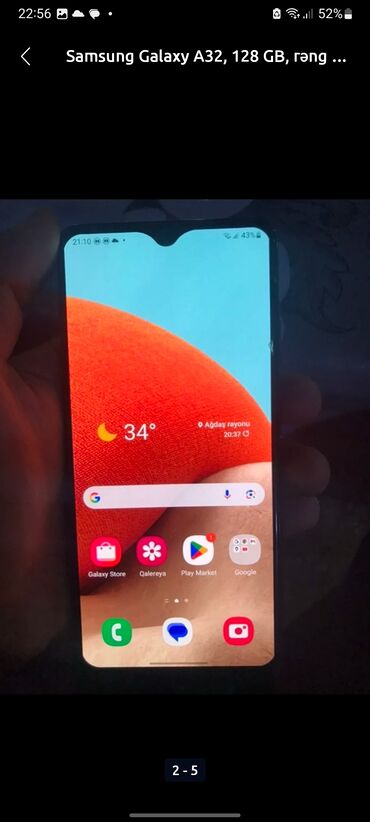 Samsung Galaxy A32 – 128 GB yaddaşlı, bənövşəyi (Awesome Violet) rəng.