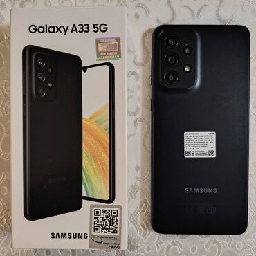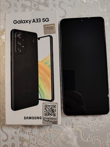Samsung Galaxy A33 5G – qutu və cihaz birlikdə.