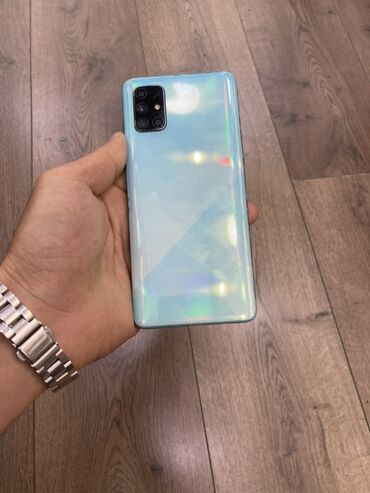 A51 Samsung tünd göy rəng, Face İD, Barmaq İzi, NFC bütün funksiyalar işlək, batareya əla saxlayır