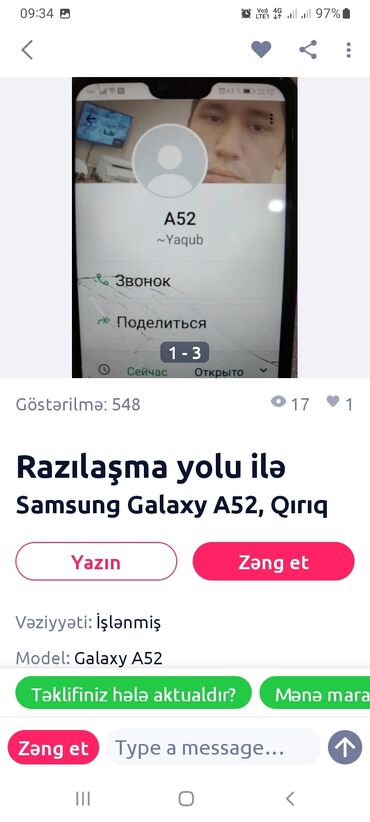 BUŞƏKLDƏKİ AXDARLIR TELFON SATRMIŞ KİMİ CAMATI aladıb birçox Adama - Ekran: tam ekranlı, üst hissədə kiçik çıxıntılı (notch) dizayn; ekranda çat izləri görünür