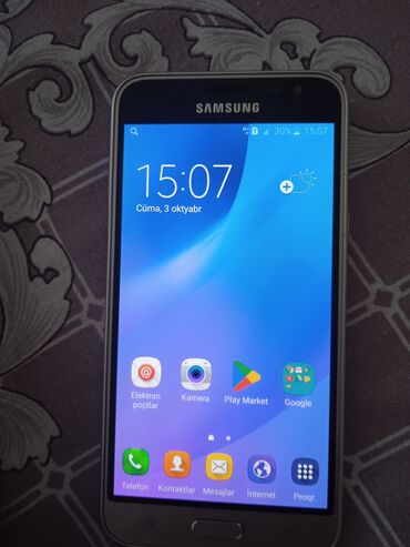 Samsung Galaxy J3 (Android) - Ekran: 5.0" Super AMOLED, ön hissədə fiziki “Home” düyməsi və sensor naviqasiya düymələri - Platforma: Android əməliyyat sistemi - Korpus rəngi: qızılı/şampan tonları...