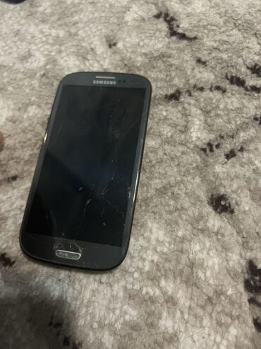 Klassik Galaxy S3 modeli ehtiyat hissələri və ya bərpa üçün uyğundur. Ekran şüşəsində çatlar mövcuddur; ümumi dizayn və komponentlər şəkillərdə göstərilib.