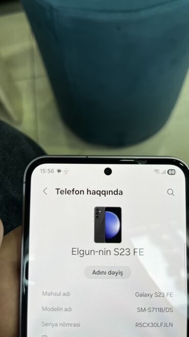 Kompakt və güclü Galaxy S23 FE gündəlik istifadə, foto/videolar və oyunlar üçün uyğundur. Model, sistem menyusunda göstərildiyi kimi rəsmi S23 FE-dir (SM‑S711B/DS, seriya: R5CX30LFJLN). Nömrə Əlaqə: 0702754669