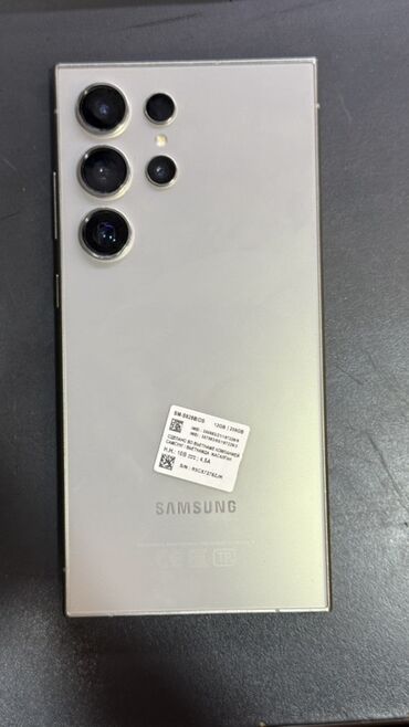 Samsung Galaxy S24 Ultra – qutu sənədləri ilə. Əsas xüsusiyyətlər: - Rəng: metalik/gümüş ton - Korpus: Titan çərçivə, kəskin kənarlı premium dizayn - Ekran: 6.8" Dynamic AMOLED 2X, yüksək yeniləm...
