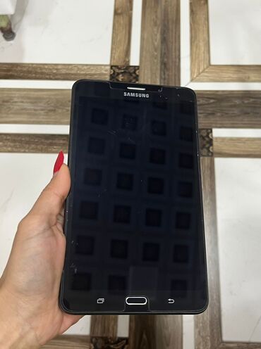 - Model: Samsung Galaxy Tab A (7" seriyası; ön fiziki Home düyməsi və sensor “Geri/Task” düymələri)