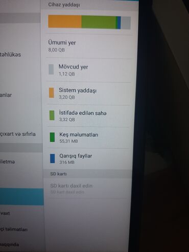 - Yaddaş: 8 GB daxili (təxminən 1.12 GB boş yer görünür)