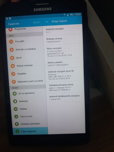 Samsung planşet Xüsusiyyətlər: - Model: Samsung Galaxy Tab A (7"