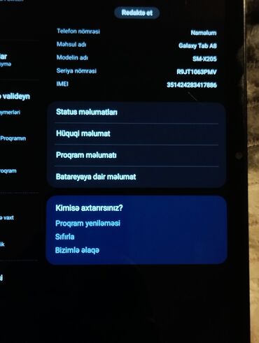 - Yaddaş və proqram: Samsung tətbiqləri və Play Store dəstəyi; sistem ayarlarında IMEI və seriya nömrəsi görünür
