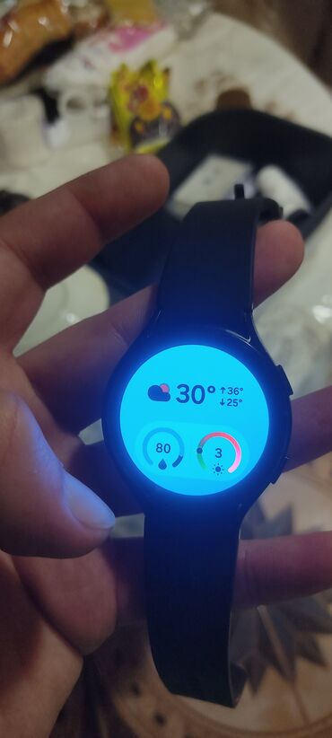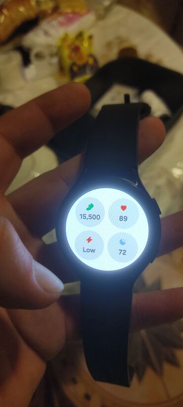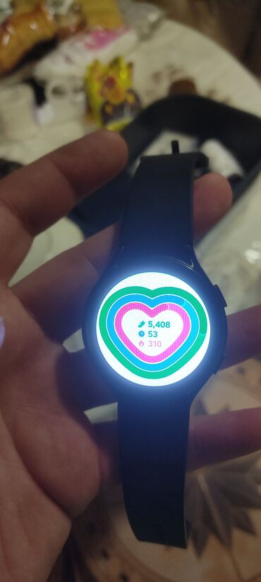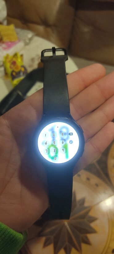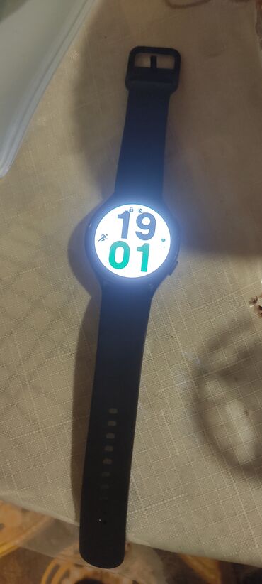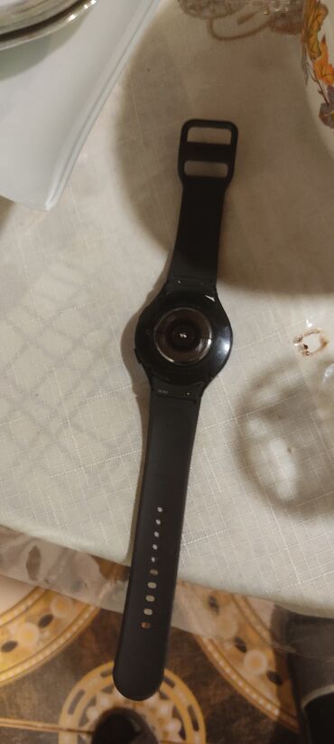 Samsung Galaxy Watch (dairəvi ekranlı, qara rəng) işləməsində heç bir problem yoxdur, karobkasida var.