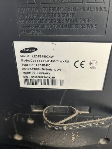 Samsung LED TV – Model: LE32B350F1W - Ekran ölçüsü: 32 düym - Panel: LCD (Samsung B350 seriyası) - Girişlər: HDMI, komponent/kompozit, antena RF, PC (VGA), audio - Güc istehlakı: 130W, AC 100–240V...