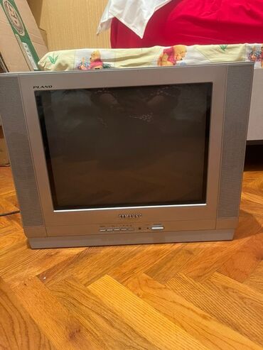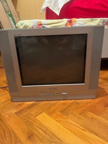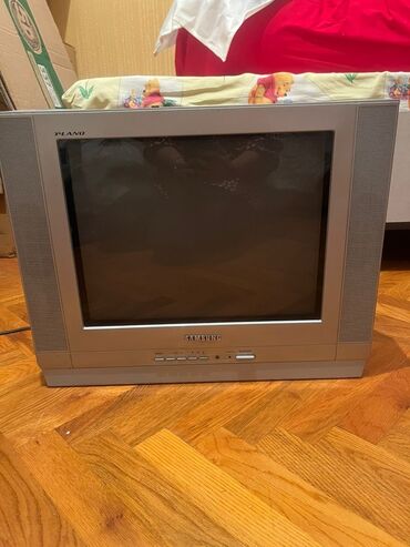 Klassik kineskop televiziya (CRT) – Samsung - Marka/model: Samsung CRT televizor - Ekran: təxminən 20–21 düym diaqonal, qabarıq ekran - Korpus rəngi: qara - Ön paneldə idarəetmə düymələri (güç, ka...