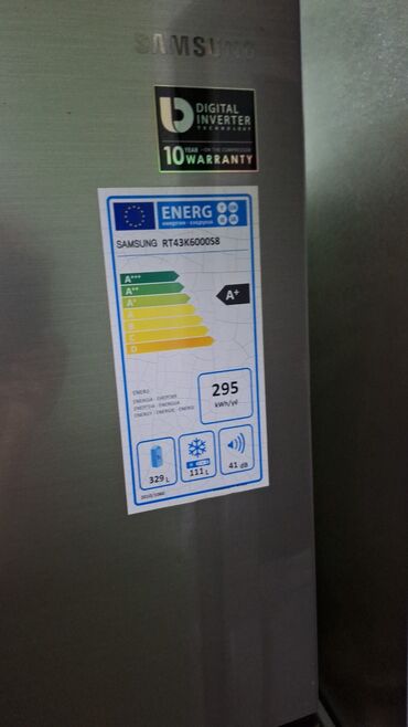 Samsung RT43K6000S8 iki qapılı soyuducu - Rəng: inox (paslanmaz polad effekti), üst kamera dondurucu - Enerji sinfi: A+ - İllik enerji sərfiyyatı: 295 kWh/il - Səs səviyyəsi: 41 dB - Ümumi həcmlər...