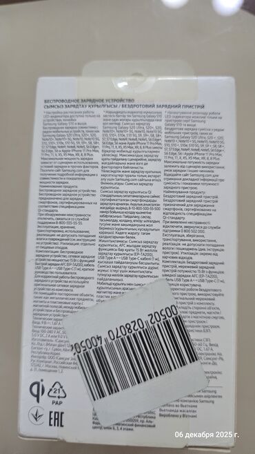 - Komplekt: simsiz şarj cihazı, sürətli şarj adapteri AFC (EP‑TA200), USB Type‑C kabel (~1 m), istifadəçi təlimatı.