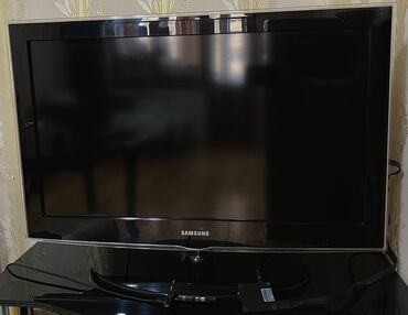 Samsung brendinə məxsus qara rəngli LCD televizor. Televizor gümüşü rəngli, fırlanan dayaq üzərində quraşdırılıb. Televizorla birlikdə üç rəfli, qara şüşəli və gümüşü ayaqlı televizor stendtəklif o...