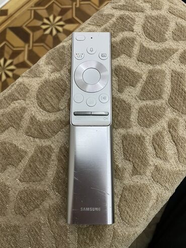 - Komplektdə Samsung metal uzaqdan idarəetmə pulti (səsli axtarış düyməsi, kanal/səs idarəsi, mənbə və menyu qısayolları)