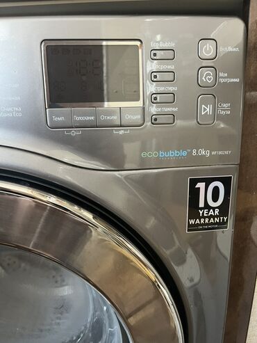 Model: Samsung WF1802XEY EcoBubble 8.0 kg. Şəkillərdə bütün idarəetmə elementləri və etiketlər göstərilib.