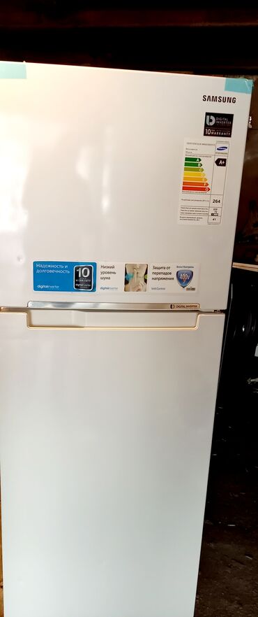 TEZEDI NWDEHMEYIBSamsung iki qapılı soyuducu - Üstdə dondurucu, altda soyuducu bölmə - Rəng: ağ, klassik dizayn - Enerji etiketi üzərində A+ sinfi göstərilir - 10 il kompressor qeydinin loqosu (et...