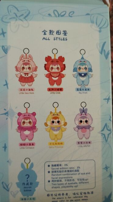 - Qutu üzərində göstərilən digər üslublar: Little Sea Hare, Little Crab, Big Shark, Little Octopus, Spiny Porpoise; “Secret edition” ehtimalı 3%