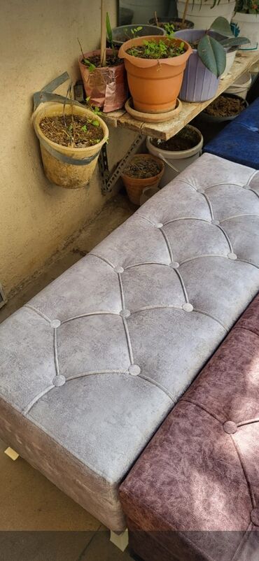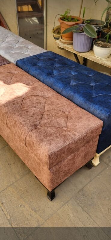 Pufik oturacaqSandiglar uz 1 m en 50sm h 40 sm qiymet 80 manar bazidir ustunde oturmag olur renkleri var