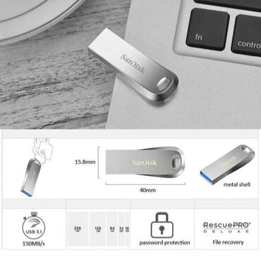 Kompakt, davamlı metal dizayn; sürətli məlumat köçürmə; faylların şifrələnməsi və bərpası üçün proqram dəstəyi. Laptop, PC və USB portu olan digər cihazlarla uyğun işləyir.