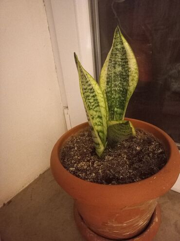 - Növ: Sansevieria trifasciata ‘Laurentii’ (kənarları sarı haşiyəli, mərkəzi boz-yaşıl naxışlı yarpaqlar)