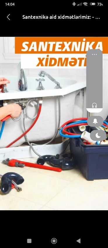 santexnik ustası Bütün növ santexnik işlərin görülməsi 12ilik təcrübə Su ve kanalizasiya xətlərinin çəkilməsi Kombi radiator istipol xətlərinin çəkilməsi və quraşdırılması Kombi radiator istipo...
