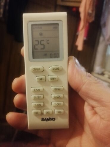 - Düymələr: ON/OFF, MODE (rejim seçimi), TEMP- / TEMP+ (temperatur tənzimləmə), FAN (ventilyator sürəti), SWING (hava axınının istiqaməti), SLEEP, CLOCK (saat), T-ON / T-OFF (taymerlə açma/söndürmə), TIME- / TIME+ (taymer vaxtı), CANCE