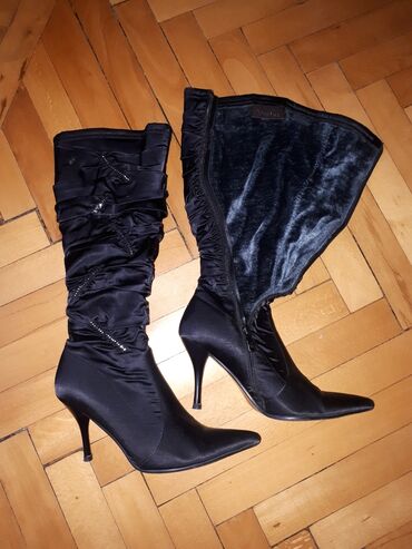 Qadın uzun temiz dəri çəkmə baha alınıb - Rəng: tünd qəhvəyi - Material: yumşaq dəridən, dekorativ iri tikişlər - Dizayn: dizə yaxın hündürlük, yan tərəfdə metal tokalı dekorativ kəmər - Daban: qa...