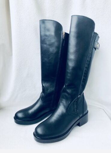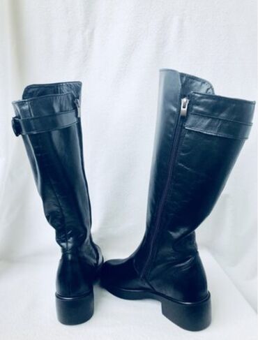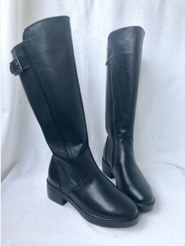 Qadın uzun temiz dəri çəkmə baha alınıb - Rəng: tünd qəhvəyi - Material: yumşaq dəridən, dekorativ iri tikişlər - Dizayn: dizə yaxın hündürlük, yan tərəfdə metal tokalı dekorativ kəmər - Daban: qa...