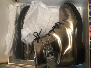 Qadınlar üçün dəbli qısa çəkmələr - Material: yumşaq nubuk , brend Sandro Vicari italiya - Rəng: tünd boz-bənövşəyi ton - Dizayn: ön hissədə geniş laklı dəri qayış və iri metal toka; tokada dekora...