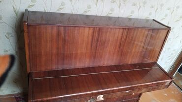 - Korpus: parlaq laklanmış qəhvəyi/maun tonlarında ağac finişi, klassik düz xətli dizayn.